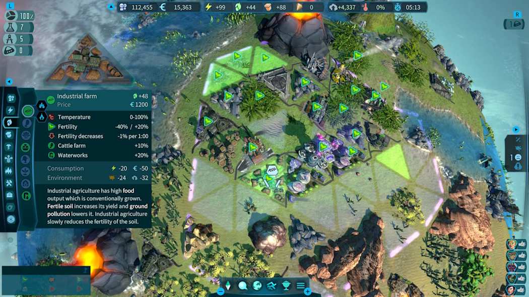 通过建设发电厂、农场和工厂来建设大城市,满足他们对资源的需求。挖掘 ideon(伊迪安)晶体,平息骚乱,研究技术和构造,在保持健康生态系统的同时使你获得最大程度的成长。