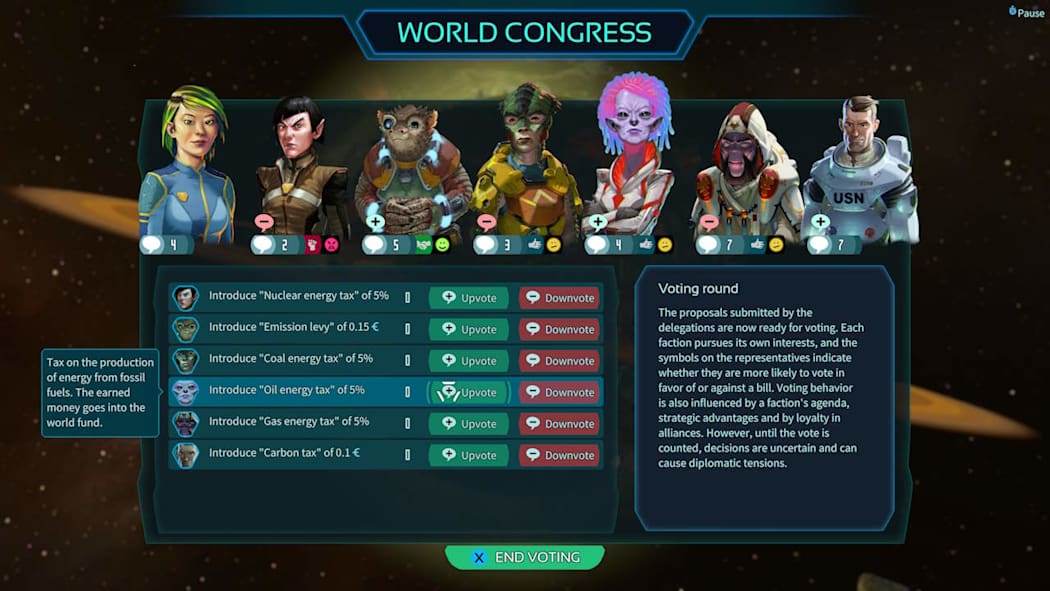 你将深切体会星际公司的利润目标与为人民保护生存条件的需要之间的巨大冲突。在你的殖民地发展的同时,废气排放和土地污染会影响全球气候。不断上升的气温融化了两极的冰冠,你们的殖民地被不断上升的海平面所摧毁。