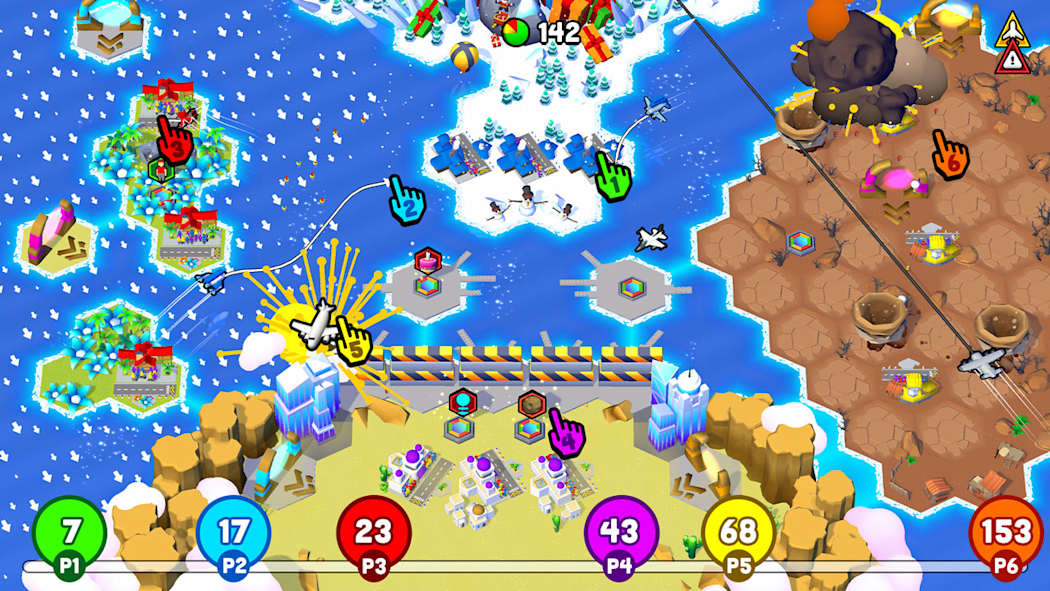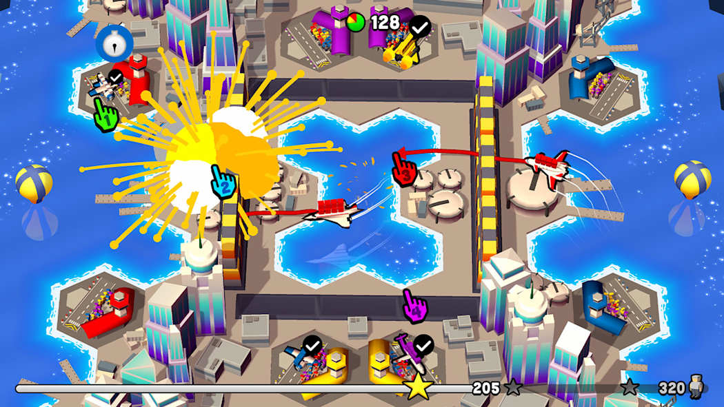 在高达 8 人的激烈战斗中与朋友们对决:丢下流星、引发龙卷风或向对手丢出一块巨大蛋糕。让最多乘客安全抵达目的地的飞行员就是赢家。