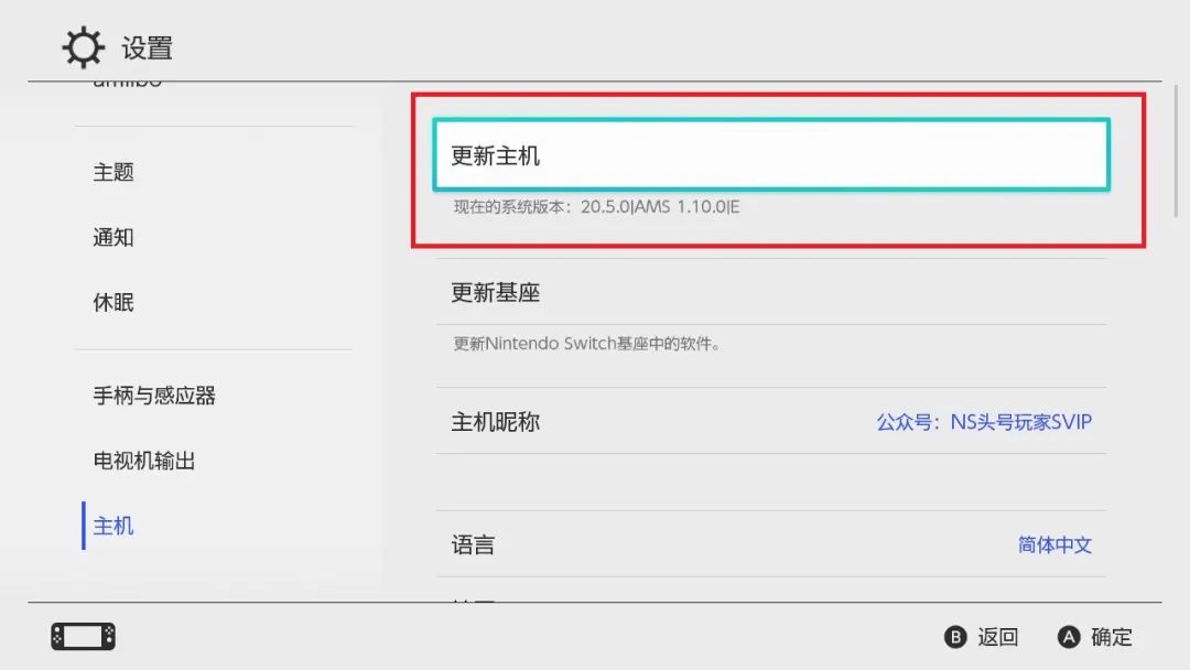 11.重启后,打开【设置-主机】确认大气层版本以及固件版本成功升级。