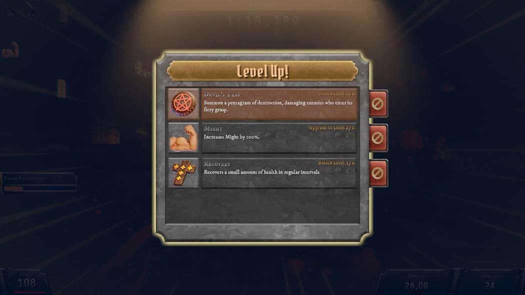 《Bloodshed》将轻度 Rogue 元素与复古画风、第一人称视角以及“类幸存者”的狂乱战斗动作特色相融合,带来丰富而刺激的游戏体验。面对一波又一波的不死敌人,积累经验值,并在战斗中升级技能和武器,以安然度过一夜危机。即使死亡,你辛苦赢得的金钱也不会丢失,可以用来换取持续性升级和可解锁内容,让你在游戏中走得更远,也进一步丰富了整体玩法。