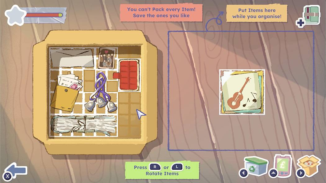 自适应文字谜题:不小心没把物品妥善打包?同一物品的破损版和完好版可以解锁出独特的文字,用于回忆录创作。